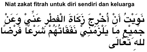 “Aku Niat Mengeluarkan Zakat Fitrah Untuk Diriku Dan Seluruh Orang Yang Nafkahnya Menjadi Tanggunganku Fardhu Karena Allah Taala.”